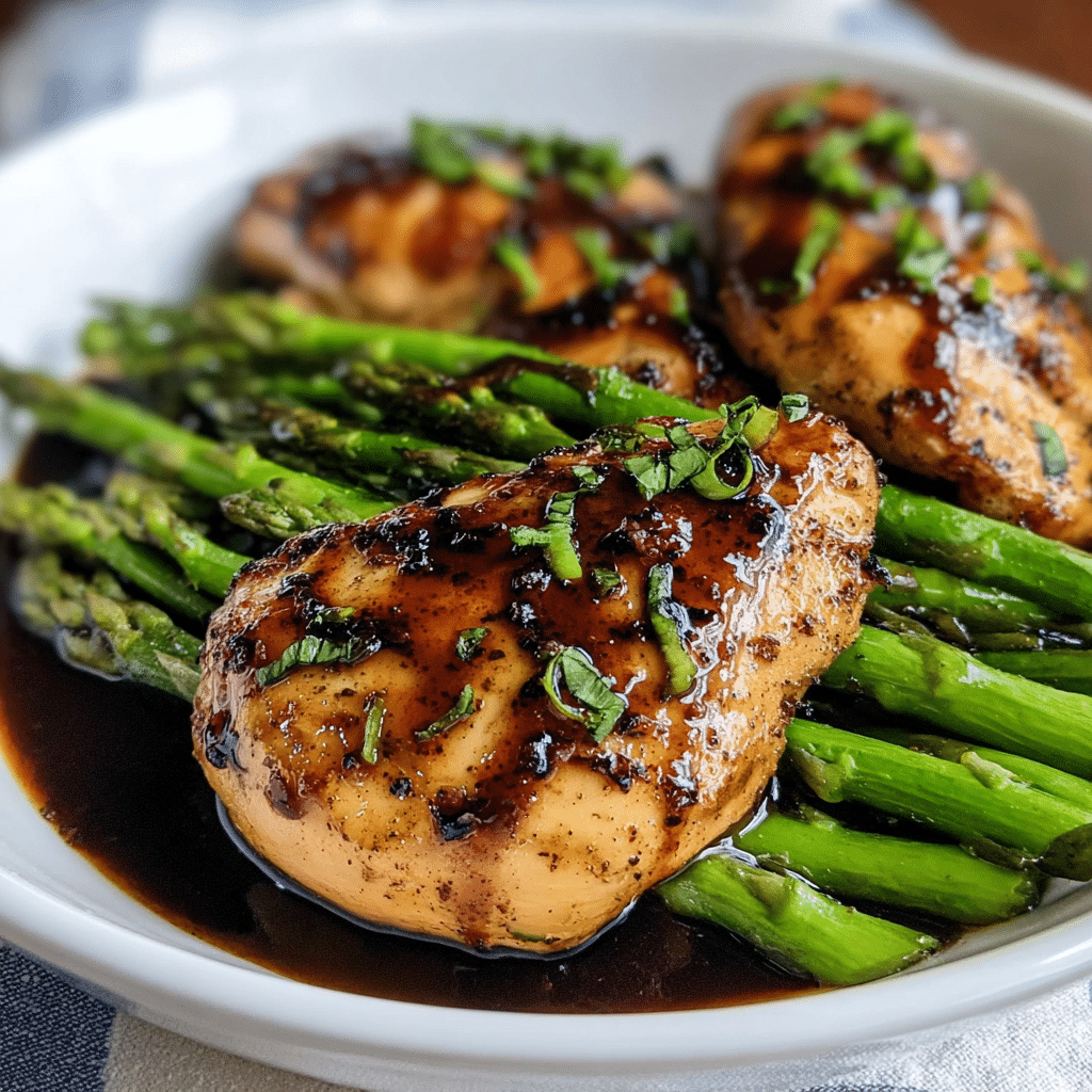 A delicious and easy recipe for balsamic chicken asparagus featuring tender chicken breasts and fresh asparagus in a tangy balsamic glaze that’s perfect for a healthy weeknight dinner.