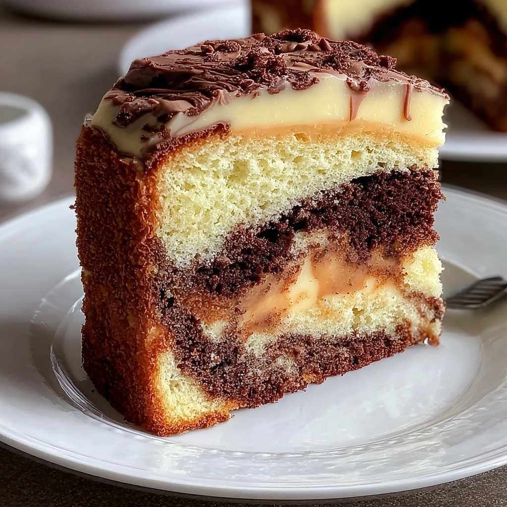 Serve this cake at room temperature for the best flavor and texture. The marble pattern looks stunning when sliced, so use a sharp knife for clean cuts. Each slice showcases the beautiful swirl of vanilla and chocolate.