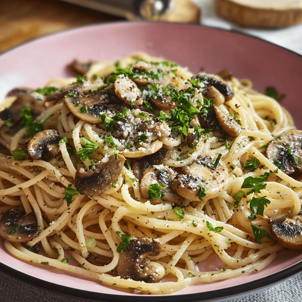 Keywords: mushroom garlic spaghetti, easy pasta recipe, vegetarian pasta, quick dinner, Italian cooking