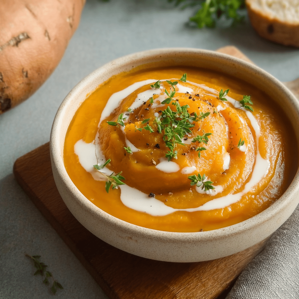A warming and nutritious pumpkin sweet potato soup that combines the natural sweetness of roasted vegetables with aromatic spices for a comforting meal.